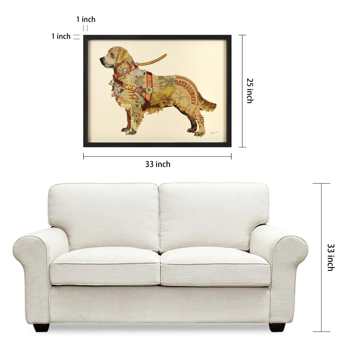 DetailBehold the enchanting creation of artist Alex Zeng, a dimensional art collage that transcends the boundaries of traditional art. In this masterpiece, a golden retriever comes to life before your eyes, capturing the essence of warmth and companionship. Presented on a shadowbox frame under glass, the artwork reveals layers of depth and emotion. Alex Zeng's signature adds a personal touch, infusing the piece with the artist's passion and vision. The three-dimensional form invites you to explore the contours and intricacies, each detail crafted with meticulous care. The shadowbox frame adds a touch of mystery as if the golden retriever is stepping out of a cherished memory. This dimensional art collage is not merely a piece of decor; it is a testament to the connection between art and emotion, a visual poem that speaks to the heart. Ease meets elegance with the preinstalled hanging system, allowing you to seamlessly place this captivating artwork as the centerpiece of your wall decor. As ambient light dances upon the glass, the golden retriever seems to radiate a gentle glow, casting a warm and inviting ambiance throughout the room.SKU43518026-000-000StyleModern & ContemporarySubjectAnimalsColorBrown, YellowCommercialYesSizeMediumDimensions33.0 In. L X 25.0 In. W X 1.4 In. DWarranty30 day Limited ManufacturerModel NumberDAC-231R-2533B